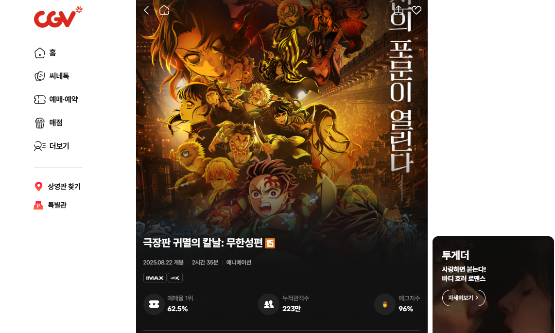 - 모바일 앱: CGV 앱을 통한 간편 예매 및 모바일 티켓 발급